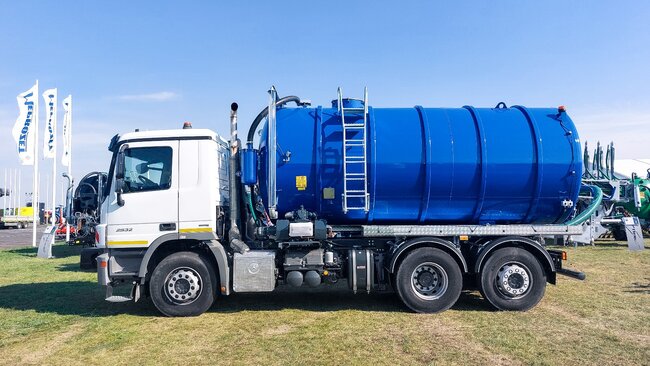 na podwoziu Mercedes Actros. Wybór ciężarówki Mercedes jako samochodu używanego jest nieprzypadkowy. Mimo że nie jest to nowy pojazd, jest niezawodny, a zadbany posłuży jeszcze długie lata. Wraz z nowoczesną zabudową asenizacyjną cena takiego zestawu jest kilkukrotnie mniejsza niż nowego pojazdu. Mamy więc połączenie niezawodnego, używanego pojazdu wraz z najnowszymi i również niezawodnymi rozwiązaniami od firmy Meprozet Kościan.